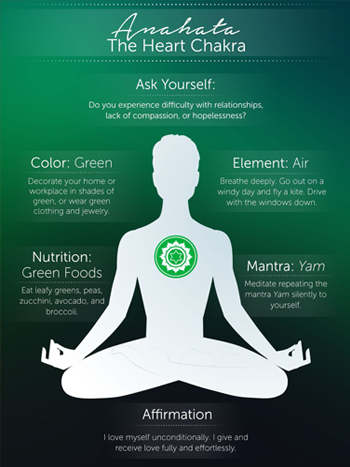 A closed heart chakra can give way to grief, anger, jealousy, fear of betrayal, and hatred toward yourself and others. Physical imbalances may manifest as heart conditions, respiratory problems, or upper-back pain.