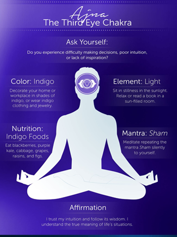 If there is an imbalance in the sixth chakra you may experience poor intuition, lack of concentration, impaired judgment, confusion, or depression. Physical imbalances may manifest as headaches, trouble sleeping, or nightmares.